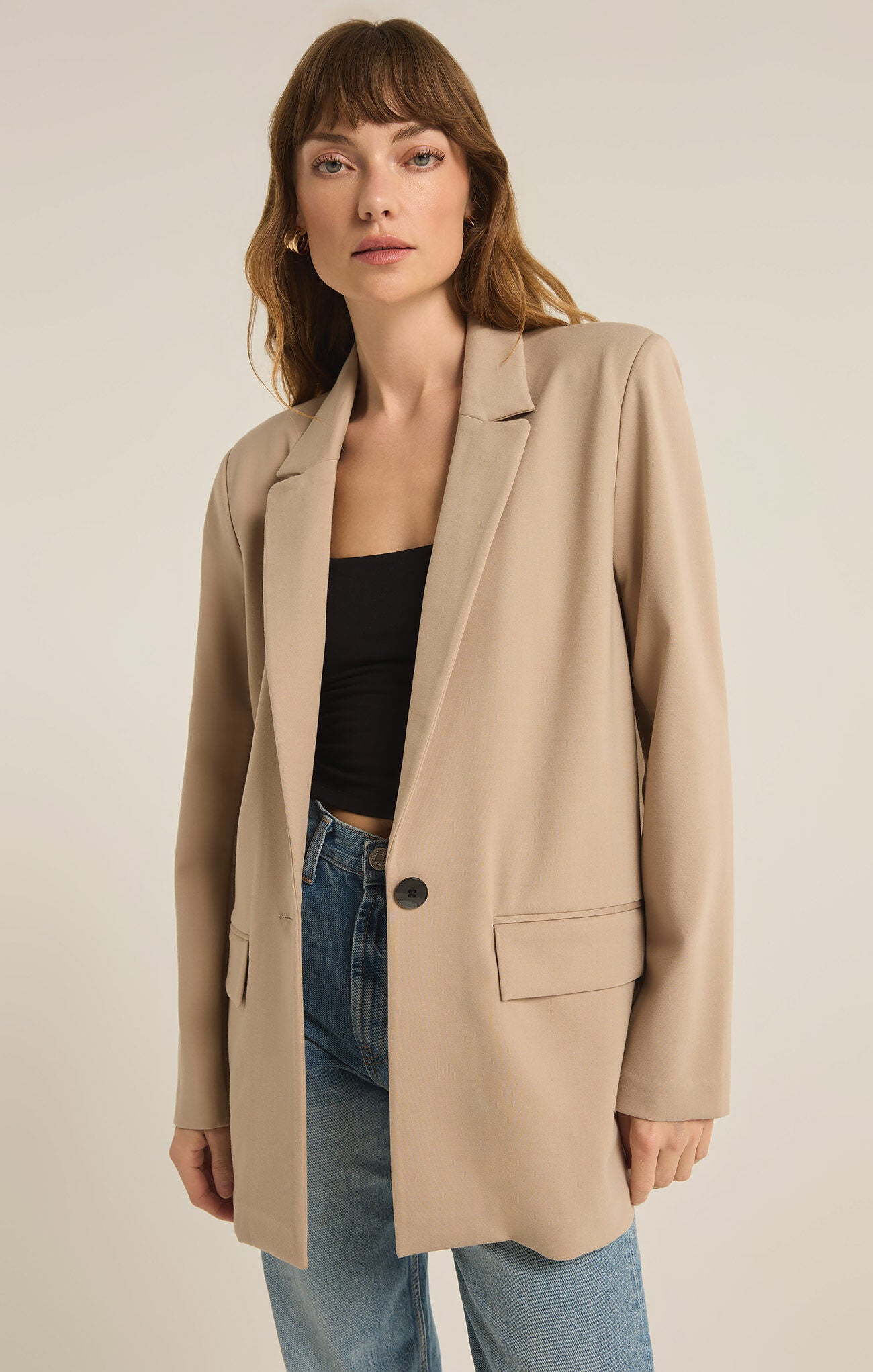 Meet your new go-to wardrobe staple: this relaxed-fit blazer with a classic notch collar, button closure, and stylish flap pockets for ultimate versatility. Made from midweight ponte fabric, it strikes the perfect balance between comfort and elegance, making it suitable for any occasion.