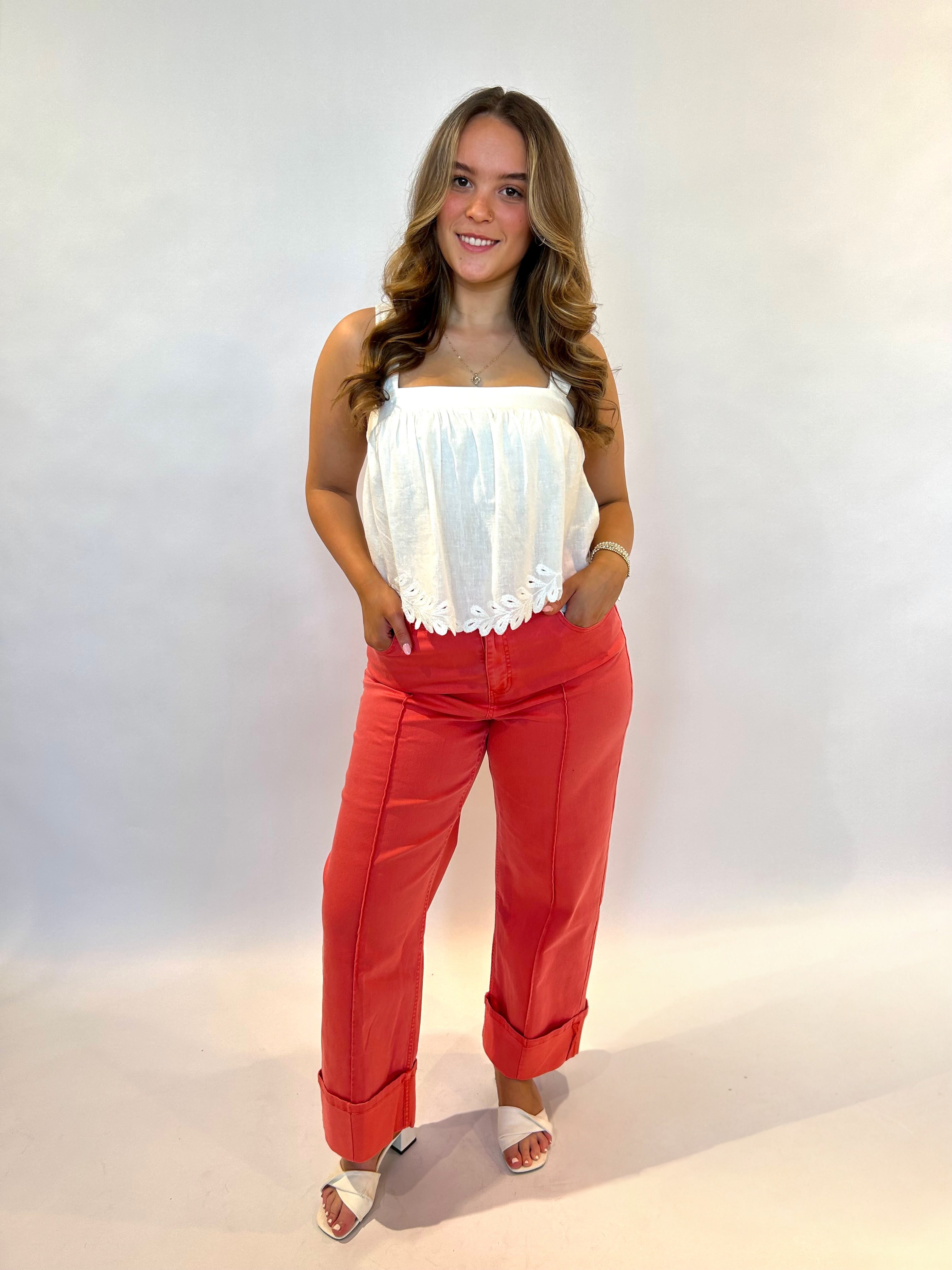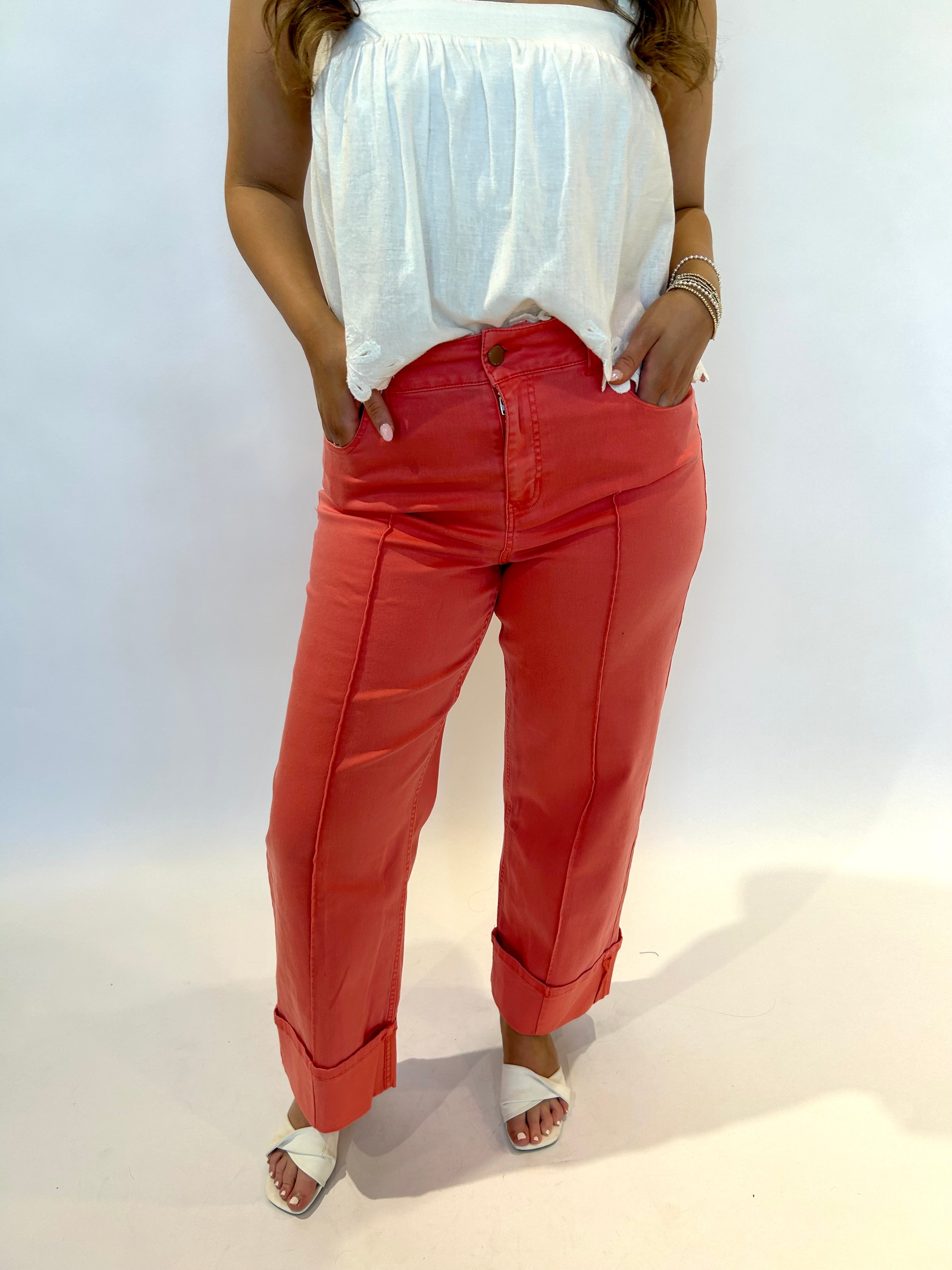 Chic and versatile, these wide-cuffed capris are a must-have for effortless style! Featuring a sleek front seam for a polished touch, they can be dressed up with heels for a refined look or kept casual with sandals. Perfect for any occasion, these capris are your go-to for timeless elegance with a modern twist!