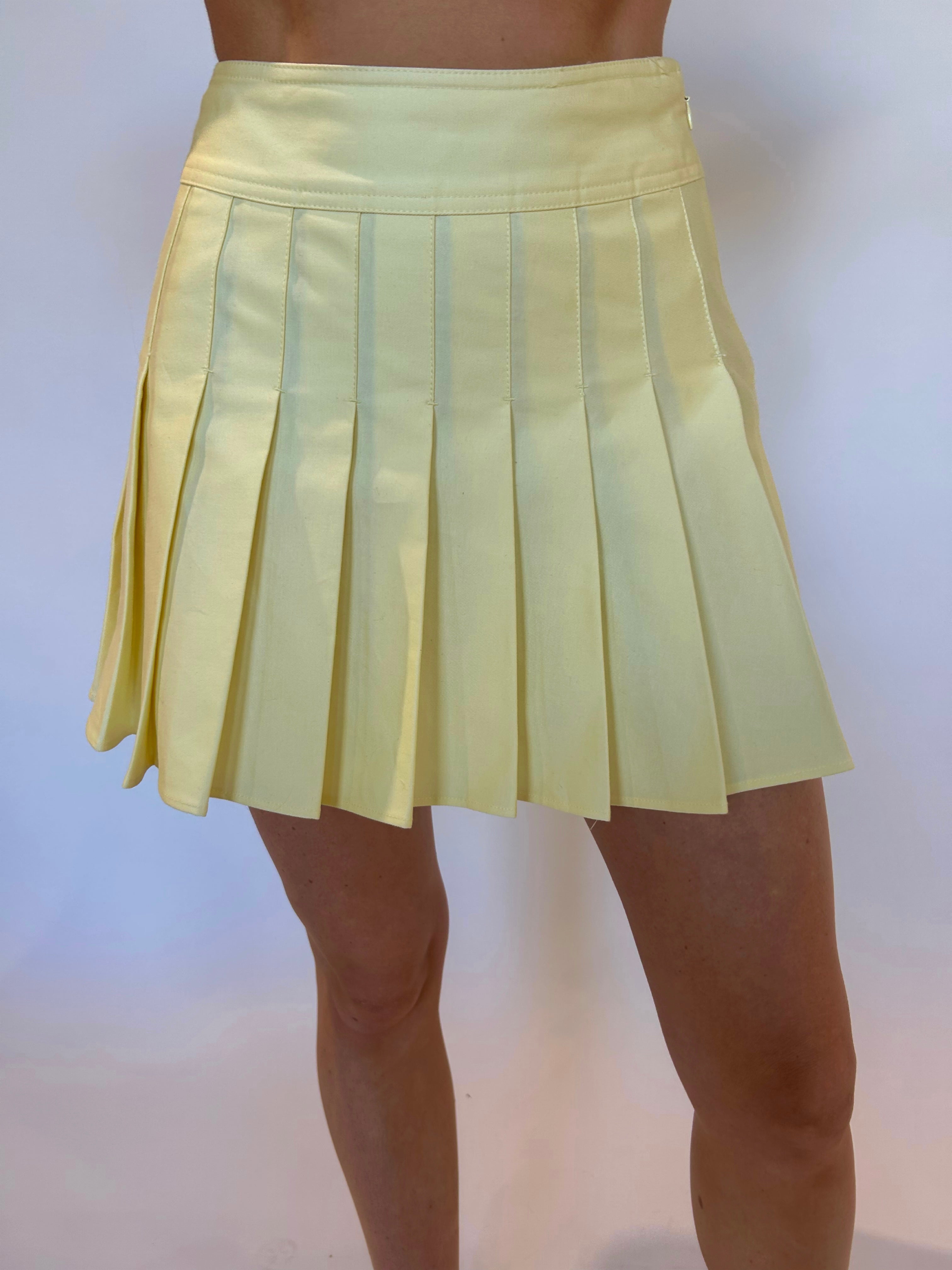 This high-waisted pleated mini skirt in soft pastel yellow is the perfect blend of flirty and chic! Designed to add style and bounce to your spring wardrobe, it’s an easy go-to for any event. Dress it up with heels or keep it casual—either way, this skirt is a sunny-day essential!