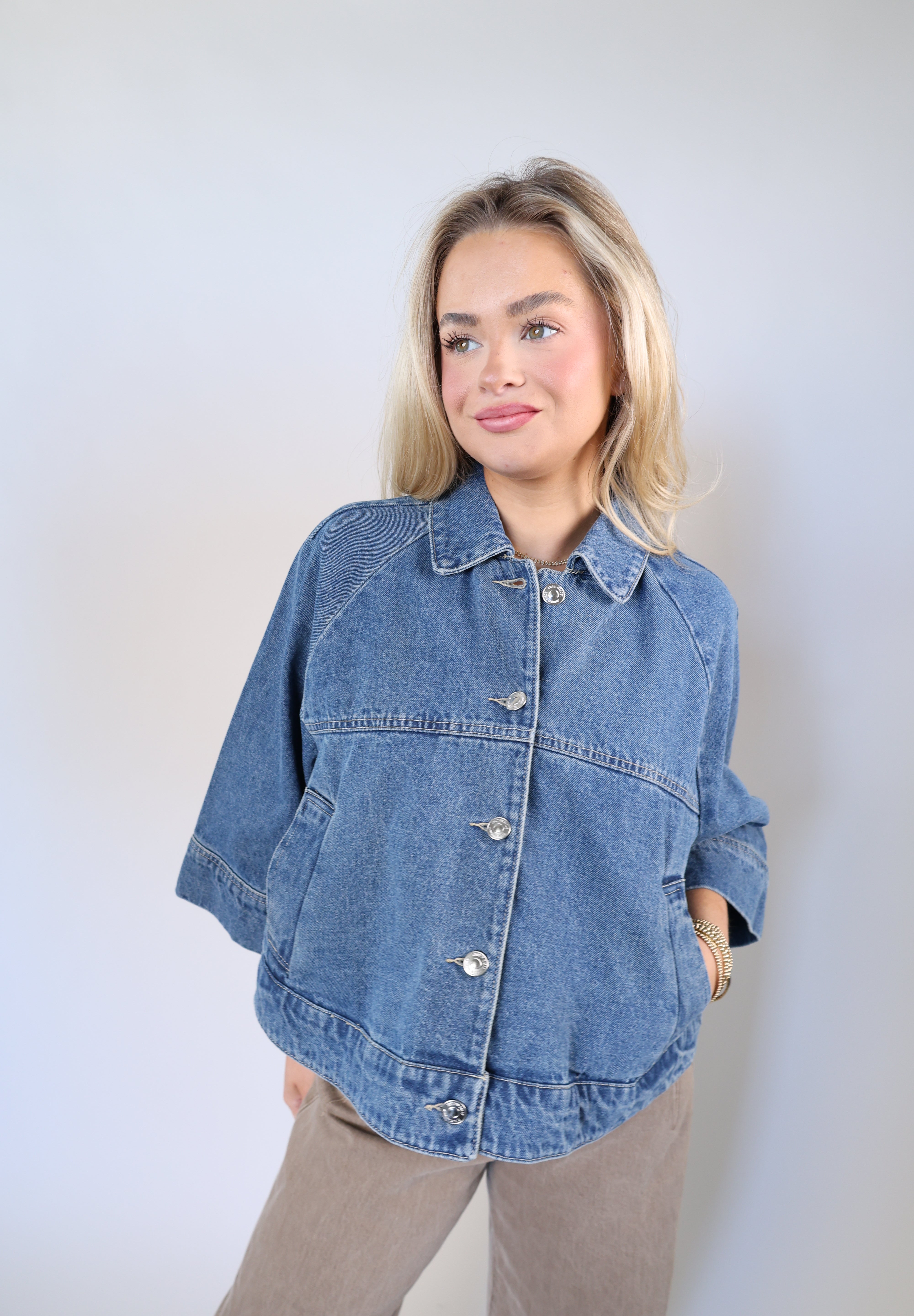 The Steve Madden Rhode Denim Swing Jacket generally fitstrue to size, offering a fashionable, slightly cropped, and swingy silhouette. It features three-quarter sleeves and is designed to sit comfortably, making it ideal for layering.Nordstrom